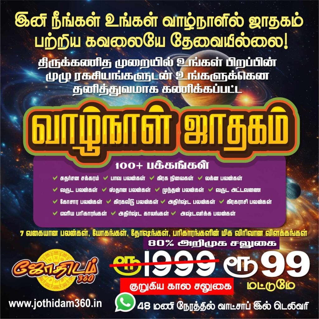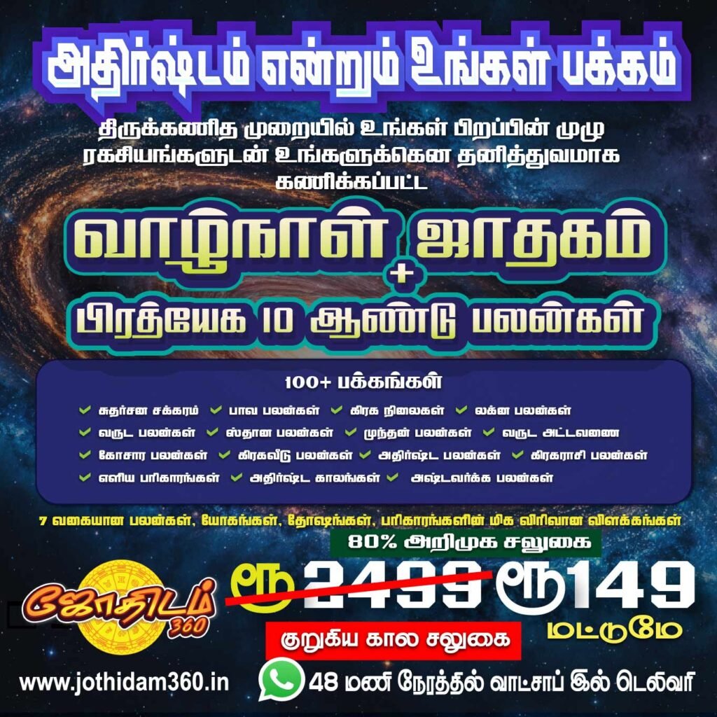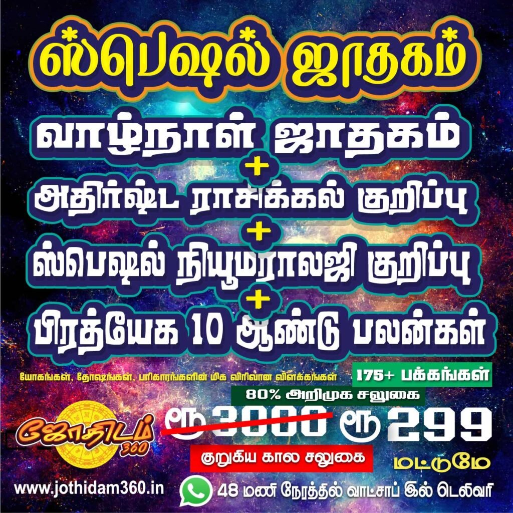📕முழு ஆயுள்கால ஜாதக குறிப்பு (முழுமையான வாழ்நாள் தசாபுத்தி பலன்களுடன்) வெறும் ரூ.99/- மட்டுமே!!